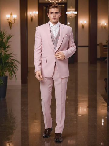 Ethnix by Raymond Men Pink Solid Tailored fit Polyster Blend Suit