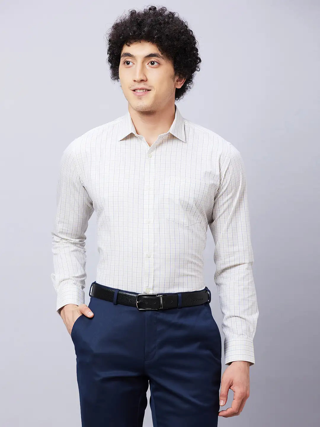Park Avenue Men Yellow Checks Slim Fit Cotton Cutaway Collar Shirt