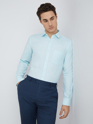 Park Avenue Men Blue Checks Slim Fit Cotton Formal Shirt