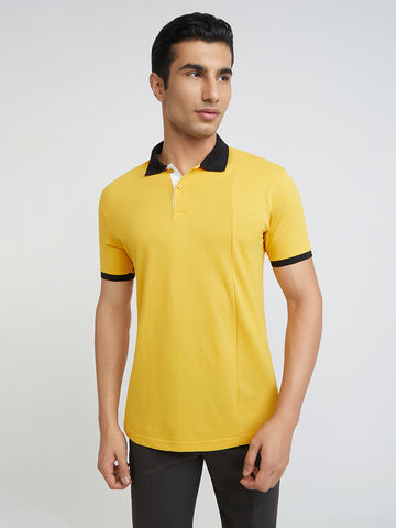 Park Avenue Yellow Solid Slim Fit Cotton Blend T-Shirt