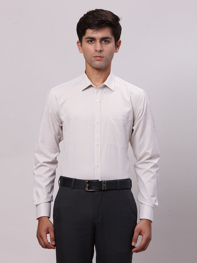 Park Avenue Beige Checks Slim Fit Cotton Blend Formal Shirt