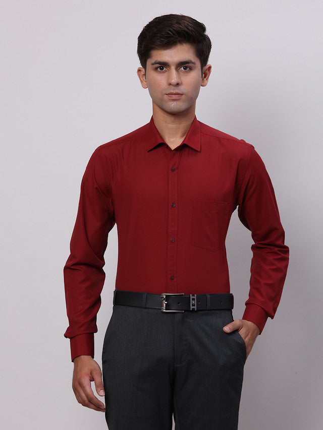Park Avenue Maroon Solid Slim Fit Full Sleeve Cotton Blend Shirt
