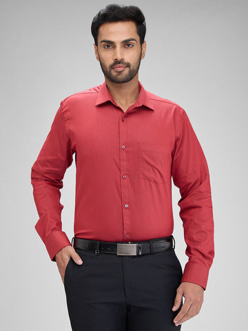 Park Avenue Men Maroon Structure Slim Fit Cotton Blend Formal Shirt