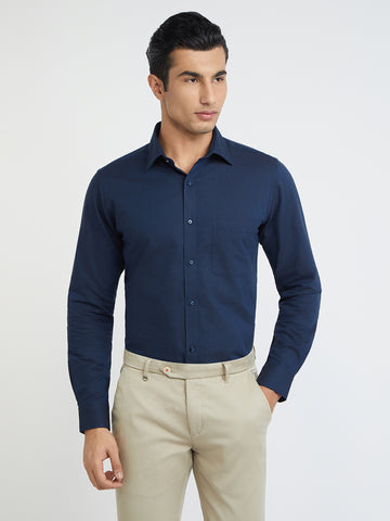 Raymond Men Blue Structure Slim Fit Cotton Shirt