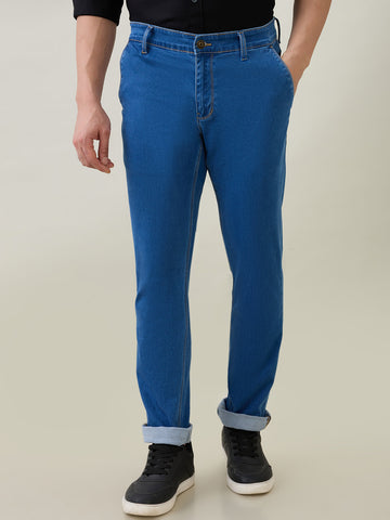 Colorplus Men Blue Plain Regular Fit Cotton Blend Jeans