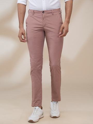 Colorplus Men Red Solid Piece Dyed Super Slim Fit Cotton Blend Trouser