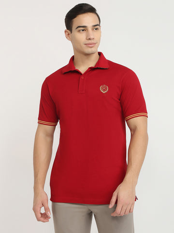 Raymond Men Maroon Solid Regular Fit Cotton T-Shirt