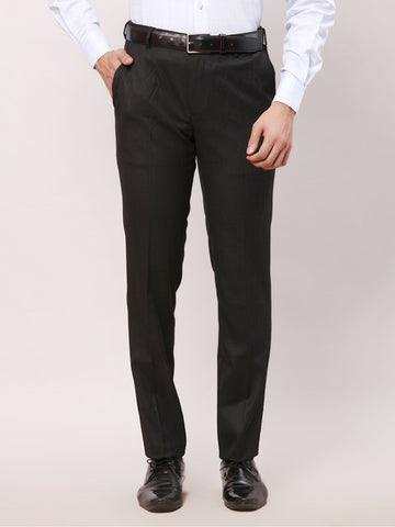 Raymond Men Black Solid Contemporary Fit Polyester Blend Trouser