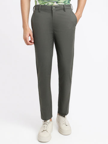 Colorplus Men Green Printed Slim Fit Cotton Blend Trouser