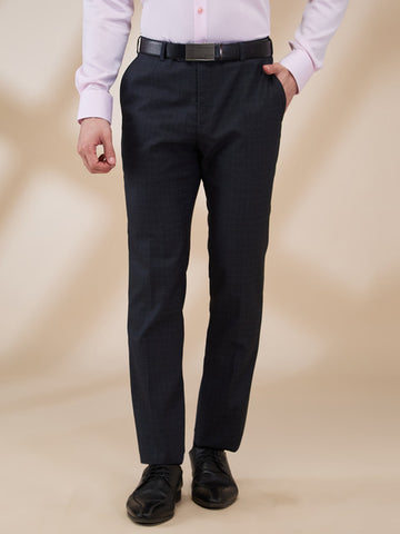 Raymond Men Blue Checks Slim Fit Polyester Blend Trouser