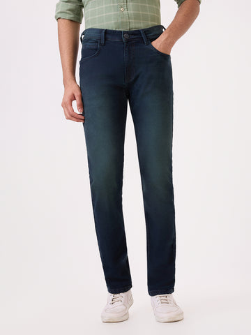 ColorPlus Men Blue Plain Regular Fit Cotton Blend Jeans