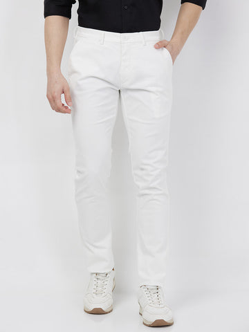 Colorplus Men White Solid Piece Dyed Super Slim Fit Cotton Blend Trouser