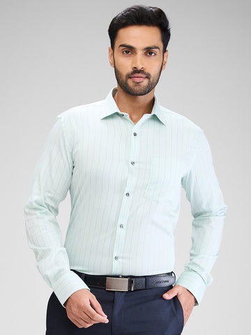 Raymond Men Green Stripe Slim Fit Cotton Blend Formal Shirt