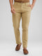 Parx Khaki Solid Low Rise Tapered Fit Cotton Blend Trouser