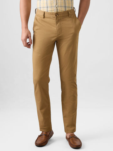 Colorplus Men Khaki Solid Piece Dyed Slim Fit Cotton Blend Trouser