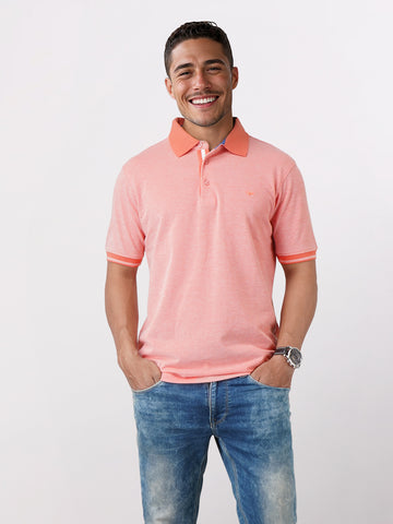 Men Orange Slim Fit Chambray Cotton Round Neck Collar Polo T-Shirt
