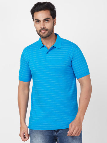 Park Avenue Blue Stripe Slim Fit Half Sleeve Cotton Blend T-Shirt