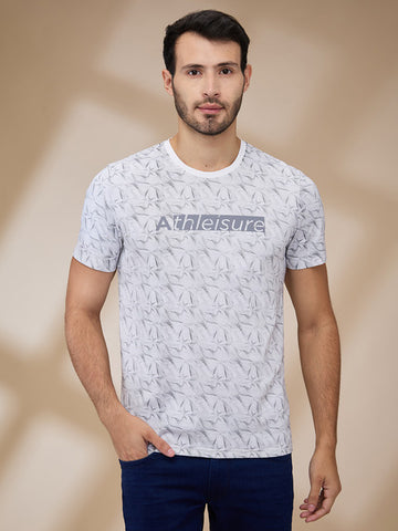 Park Avenue Men White Printed Slim Fit Cotton Blend T-Shirt