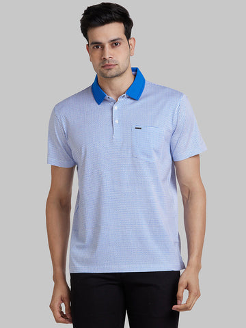 Park Avenue Men Blue Solid Slim Fit Half Sleeve Polo Neck T-Shirt