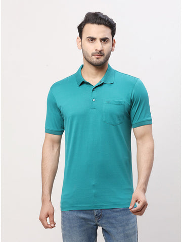 Park Avenue Men Green Solid Slim Fit Half Sleeve Polo Neck T-Shirt