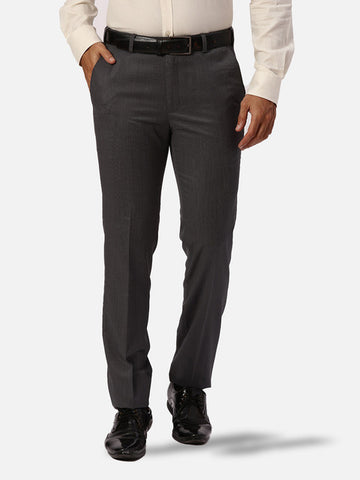 Park Avenue Men Grey Structured Slim Fit Polyester Blend Trouser