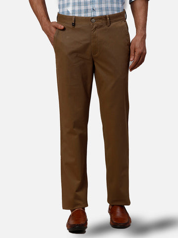 Park Avenue Men Khaki Solid Super Slim Fit Cotton Blend Trouser