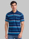 Men White Slim Fit Stripe Cotton Round Neck Collar Polo T-Shirt