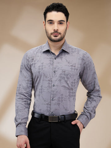 Park Avenue Men Grey Butta Fabric Slim Fit Cotton Formal Shirt