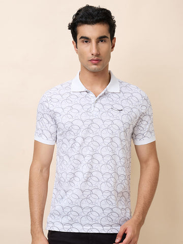 Park Avenue Men White Printed Slim Fit Cotton T-Shirt