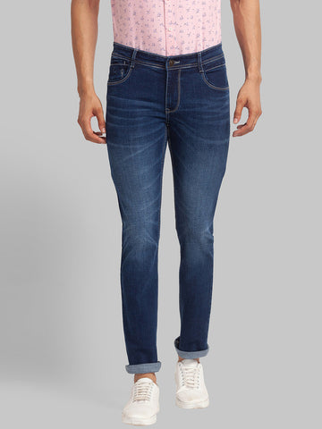 Parx Blue Knitted Low Rise Tapered Fit Cotton Blend Jeans