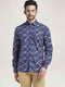 Men Blue Slim Fit Print Cotton Full Sleeve Shirts