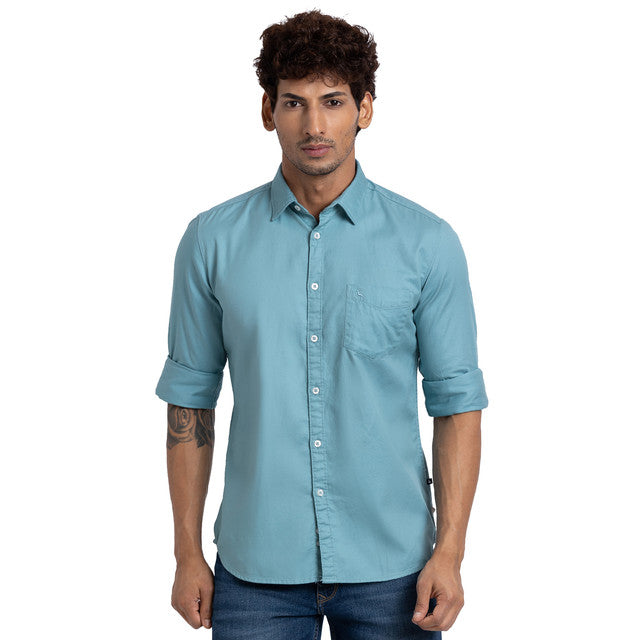 Parx Blue Solid Slim Fit Cotton Casual Shirt