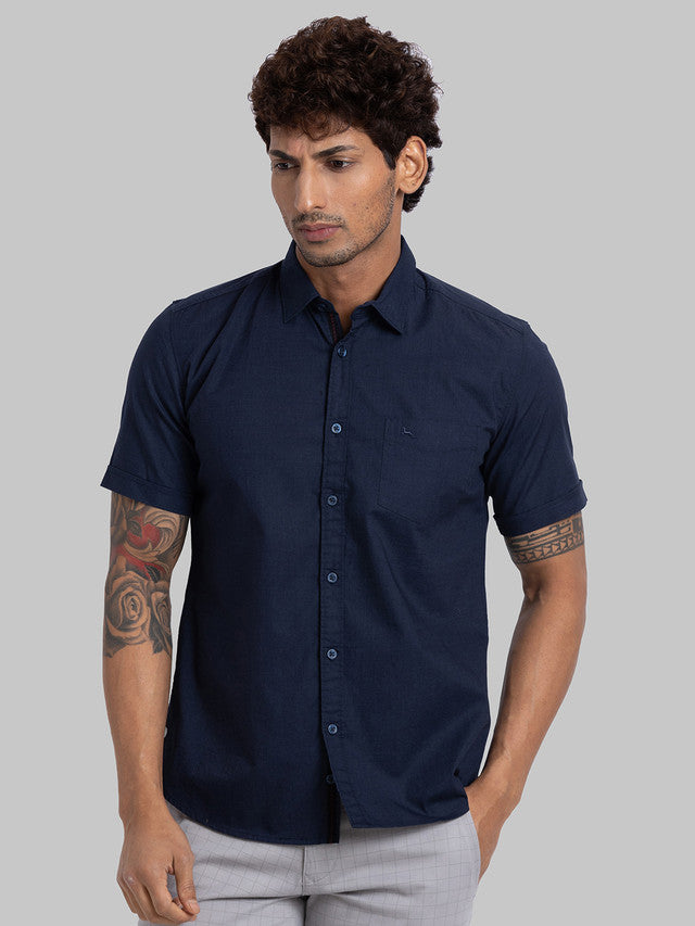 Parx Men Blue Solid Slim Fit Half Sleeve Semi Cut Away Collar Shirt