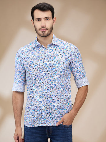 Parx Men Blue Printed Slim Fit Cotton Casual Shirts