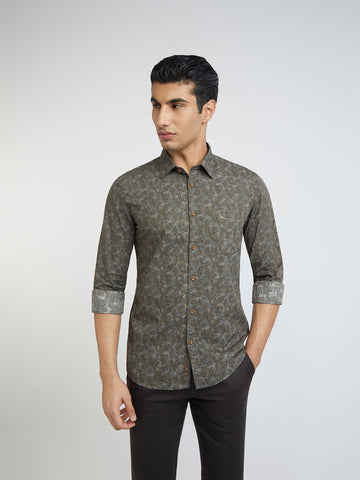 Men Green Slim Fit Print Cotton Full Sleeve Shirts