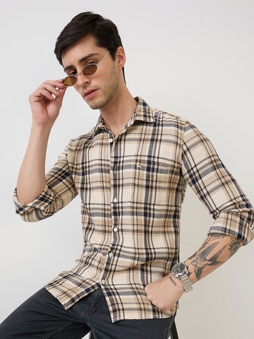 Parx Men Brown Checks Slim Fit Cotton Casual Shirt