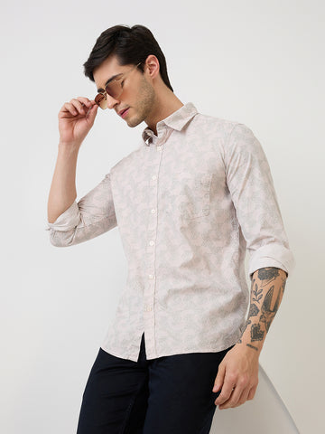 Parx Men Brown Print Slim Fit Cotton Casual Shirt