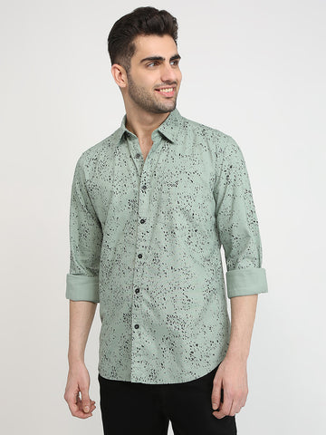 Parx Men Green Printed Slim Fit Cotton Casual Shirt