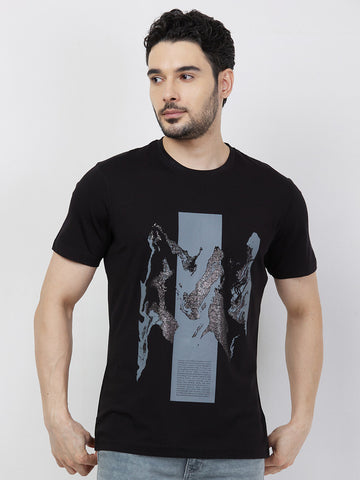 Parx Men Black Graphic Regular Fit Rayon Blend T-Shirt