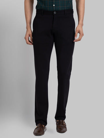 Men Black Lrt Fit Solid Cotton Blend Trouser