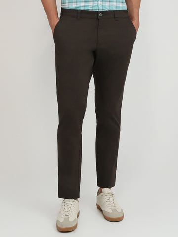 Parx Men Brown Solid Slim Tapered Fit Cotton Blend Trouser