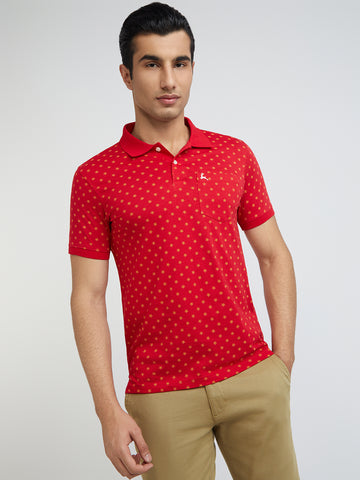 Parx Men Red Printed Regular Fit Half Sleeve Polo Neck T-Shirt