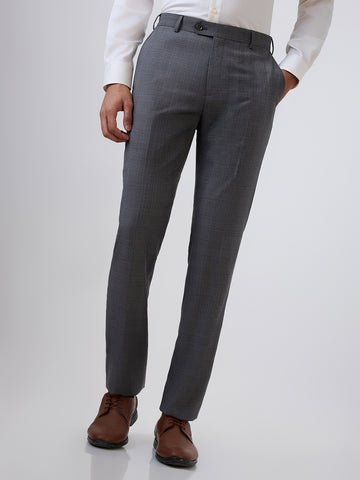 Raymond Men Grey Structure Slim Fit Polyester Blend Trouser