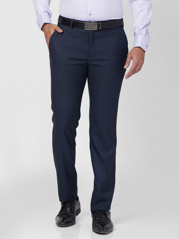 Men Blue Contemporary Fit Structure Polyester Blend Trouser