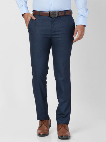 Raymond Men Blue Structure Contemporary Fit Polyester Blend Trouser