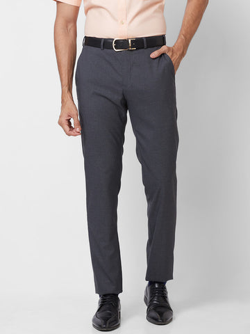 Raymond Men Grey Structure Slim Fit Polyester Blend Trouser
