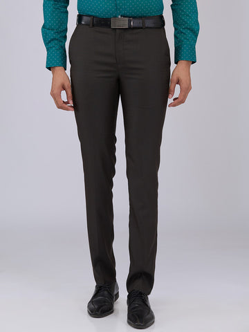 Raymond Men Brown Structure Slim Fit Polyester Blend Trouser