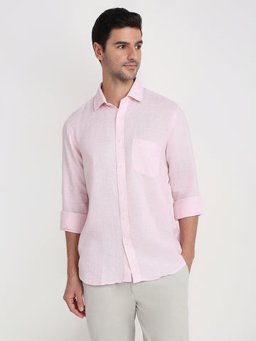 Colorplus Men Red Solid Regular Fit Linen Full Sleeve Casual Shirt