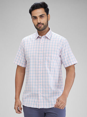 Colorplus Men Pink Checks Tailored Fit Cotton Casual Shirt