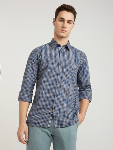 Men Blue Slim Fit Checks Cotton Full Sleeve Shirts